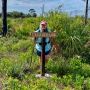 John and I couldn’t wait, as usual, so we celebrated Earth Day yesterday. We went for a lovely five mile hike on a recently renovated portion of Red Trail. This section is called the Berm Trail because it is built on a levee, or berm. We were pleasantly surprised by how lovely this Berm Trail is. Shade was plentiful, and the terrain was varied. We didn’t expect that. It was also fun to look across the ditch and catch glimpses of the road we usually walk to get to the canal we cross when we want to hike in the more jungle-like portion of Grant Flatwoods Preserve. The Berm Trail has it’s own jungle sections.